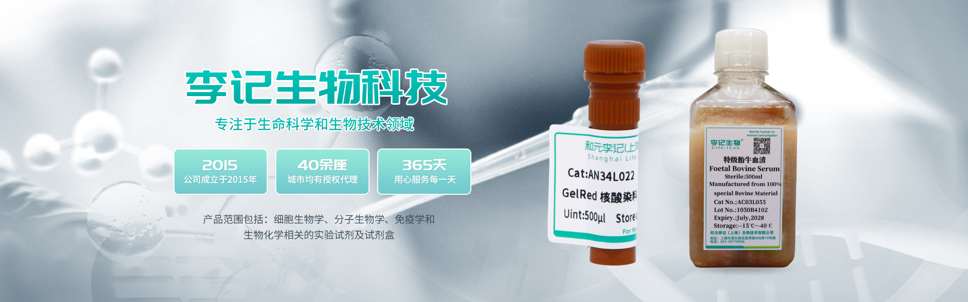 感恩返場|血清半價、胰酶&雙抗買2送1、細胞衛(wèi)士買1送1和元李記在2023年由和元生物(代碼:688238)和李記生物合資成立的,集研發(fā)、生產、銷售為一體的國產生物試劑公司,專注于生命科學和生物技術領域,致力于為客戶提供先進技術、方便易用、經濟高效的產品,產品范圍包括:細胞生物學、分子生物學、免疫學和生物化學相關的實驗試劑及試劑盒。目前在全國40余座城市均有授權代理;直接服務終端超千家,涵蓋CRO、藥企、高校、醫(yī)院和科研院所;李記產品已幫助客戶發(fā)表數百篇SCI,多篇CNS。